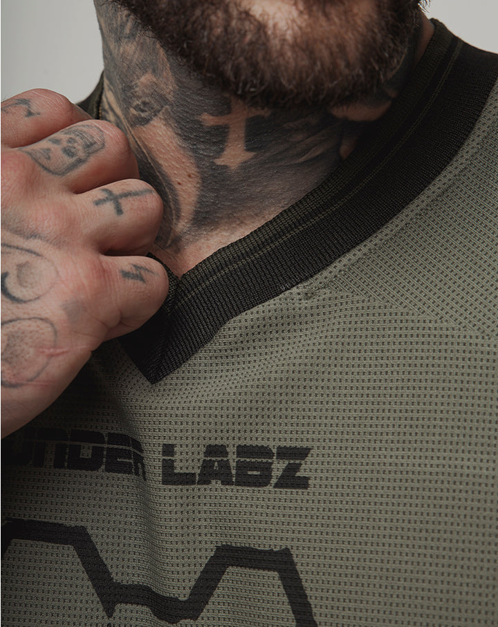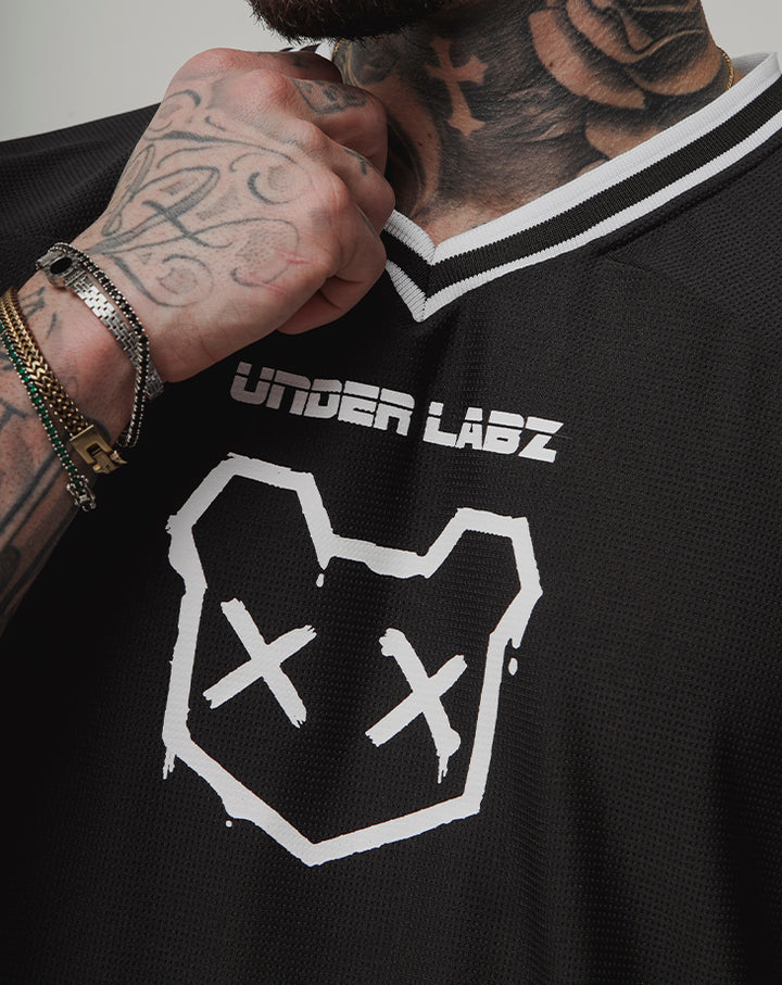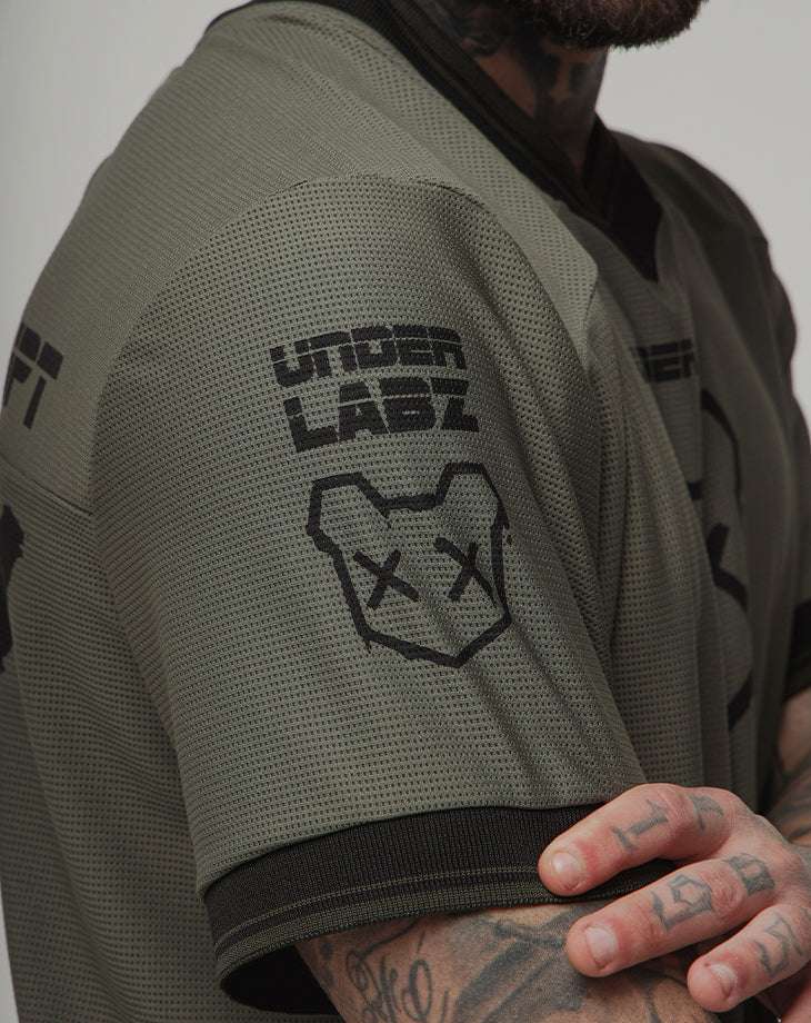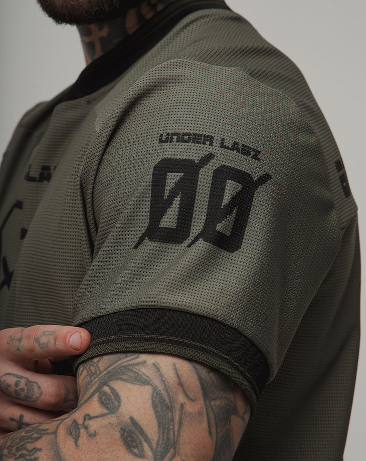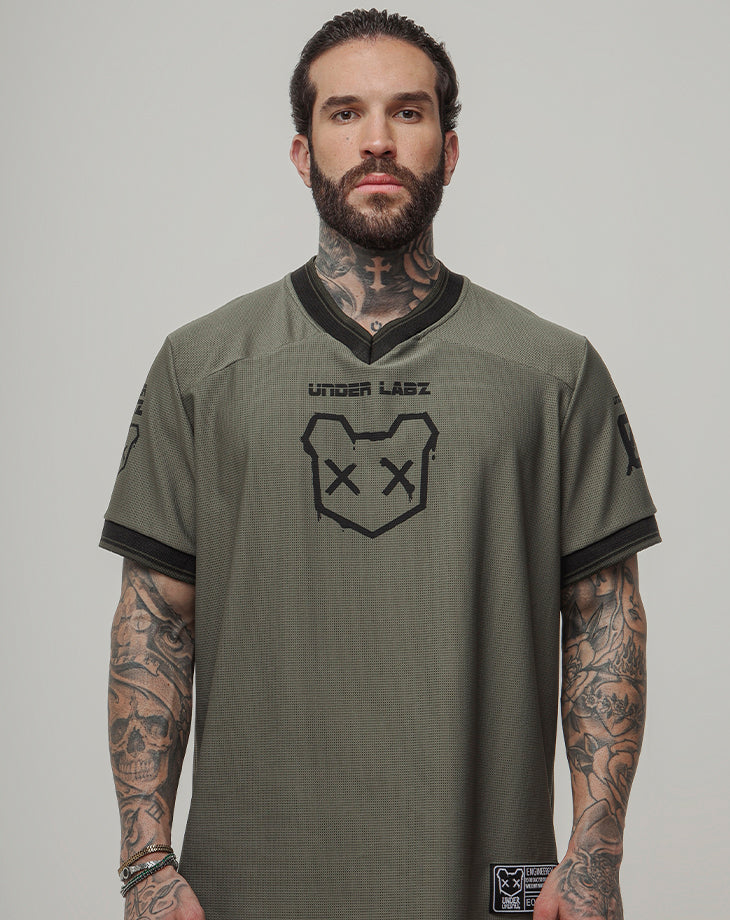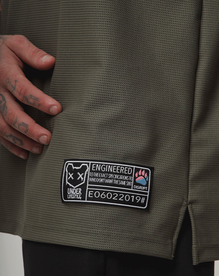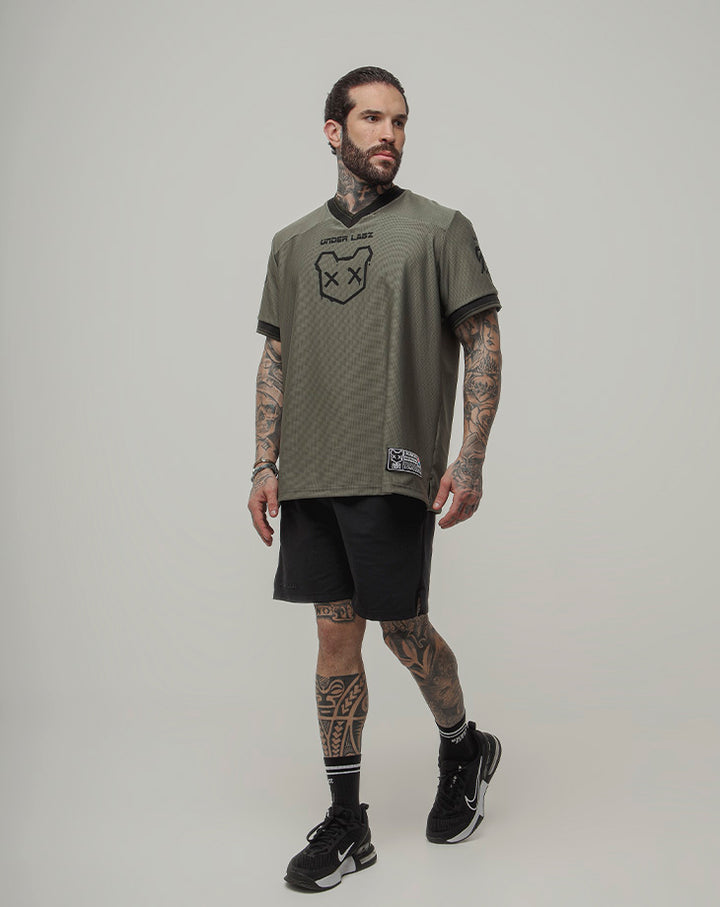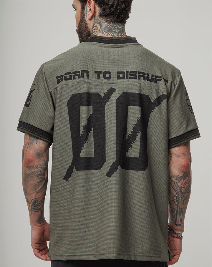 O design com gola V e acabamento retilínea nas mangas adiciona um toque moderno e estruturado, enquanto a estampa em silk screen com a frase BORN TO DISRUPT expressa atitude e autenticidade. O número 00 nas costas e a etiqueta lateral costurada reforçam o visual exclusivo da peça.