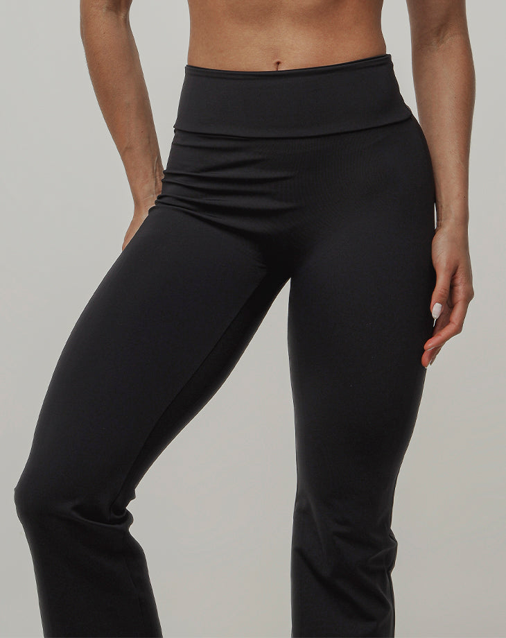 Sua modelagem flare é tendência, valorizando as curvas femininas e alongando a silhueta com elegância, perfeita para quem transita do treino ao dia a dia sem abrir mão do estilo.