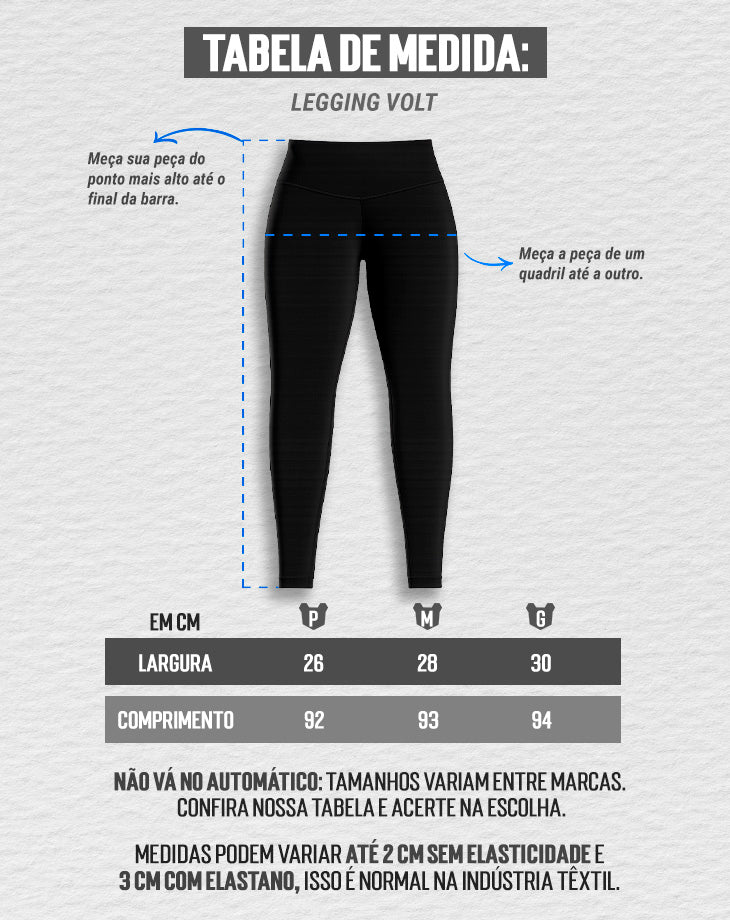 A Legging Volt é confeccionada em tecido tecnológico Adapt Stretch (88% Poliamida e 12% Elastano), com tecnologia exclusiva Under Tech, que oferece secagem rápida, ação antiodor e elasticidade 4-way stretch.