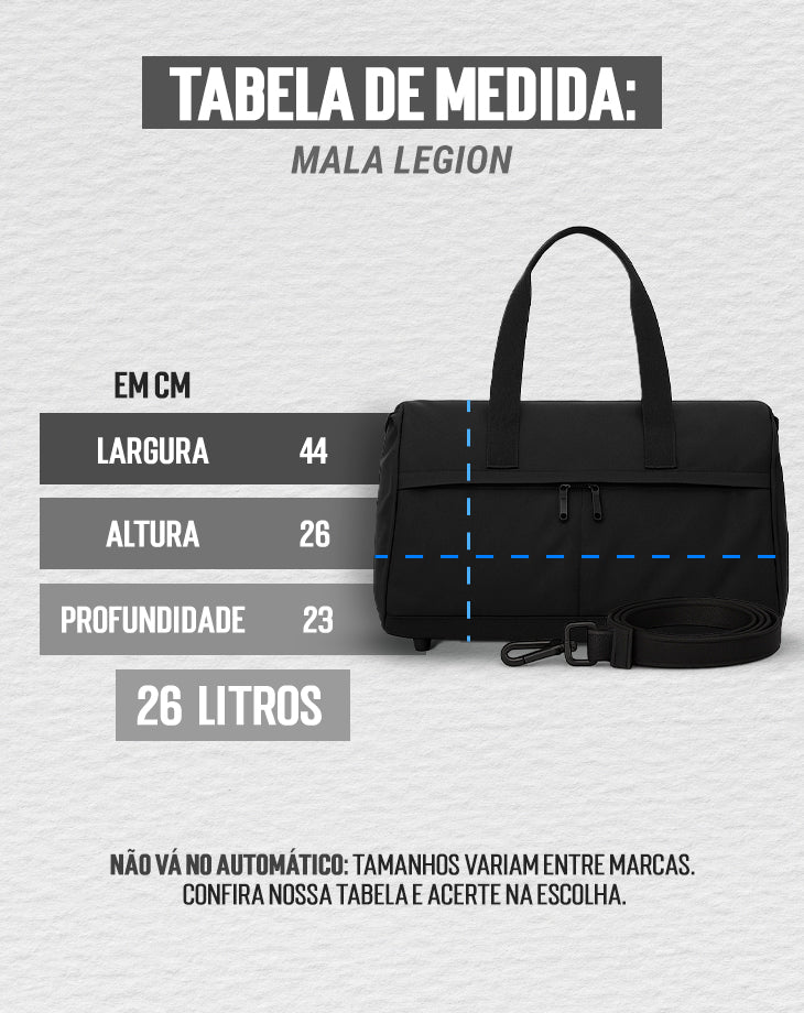 Feita para quem leva a rotina a sério, a Mala Legion une alta durabilidade, design funcional e visual esportivo marcante, ideal para treinos, viagens e o dia a dia.