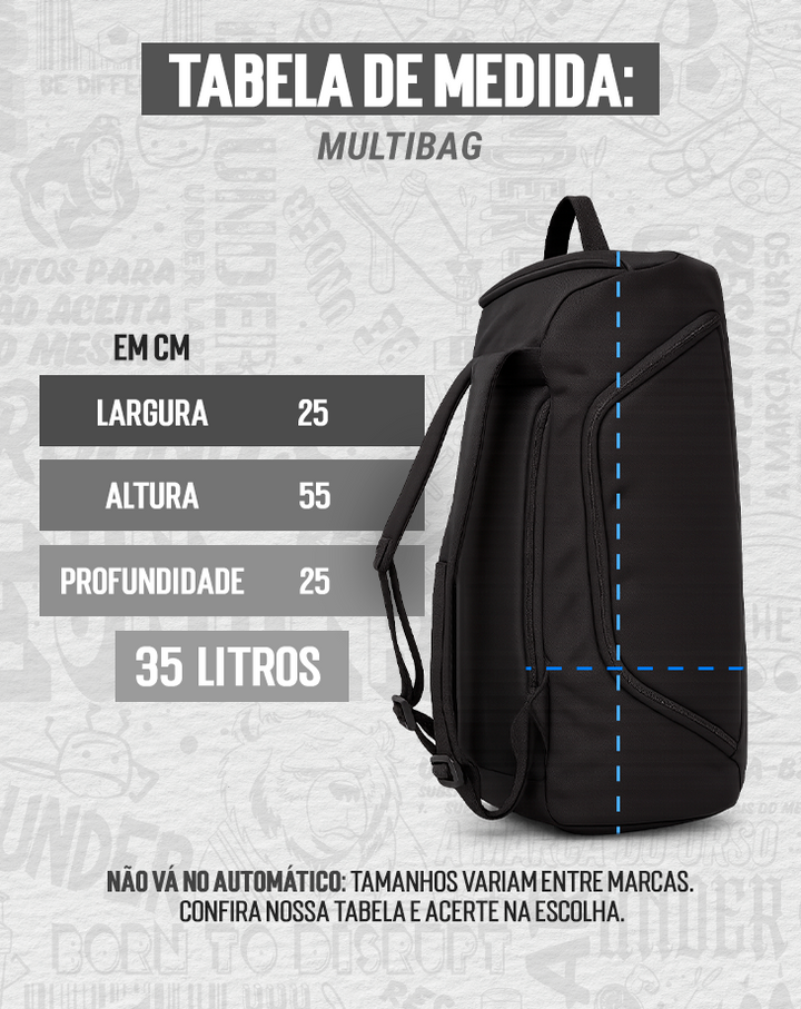 Mochila em 100% poliéster resistente e leve, com assinatura Under Labz e 35L de capacidade.