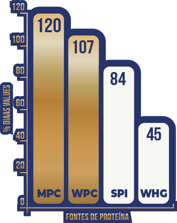 Combinação de WPC (Whey Protein Concentrate) + MPC (Milk Protein Concentrate), proteínas de alto valor biológico.