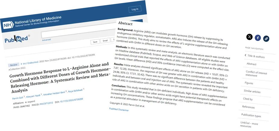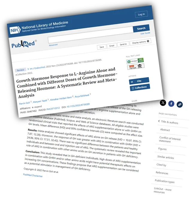 PuBMed a maior autoridade no mundo em publicações científicas, tem milhares de artigos relacionando a ingestão de ARGININA com o aumento do hormônio do crescimento, o famoso GH!
